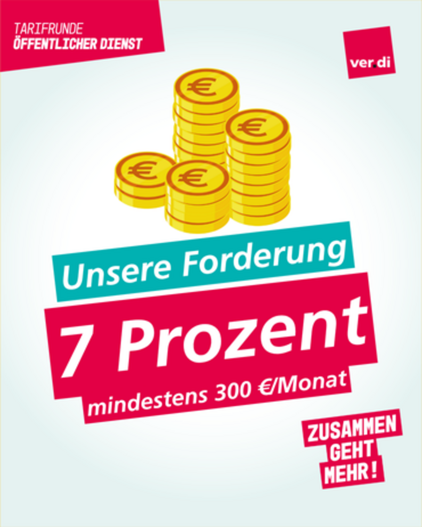 Mit einer Forderung von sieben Prozent mehr Geld im Monat – mindestens aber 300 Euro zusätzlich, um die unteren Lohngruppen zu stärken, starten wir in die Verhandlungen für die rund 2,5 Millionen Beschäftigten der Länder. Für Nachwuchskräfte sollen die Vergütungen um 200 Euro pro Monat steigen, zudem wird ihre unbefristete Übernahme nach erfolgreicher Ausbildung gefordert.