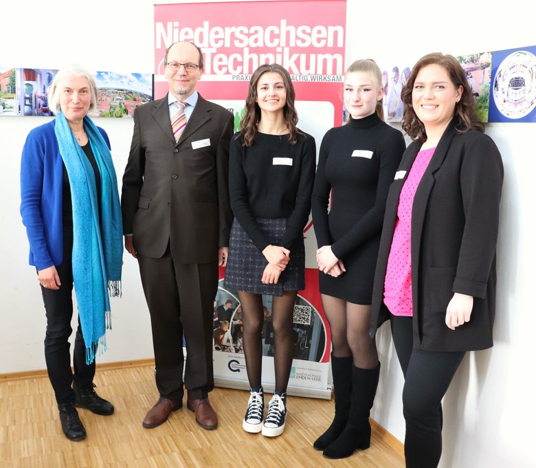 Hochschulpräsident Prof. Dr. Gerhard Kreutz hob die Bedeutung des Niedersachsen-Technikums als wichtiges Puzzlestück innerhalb des vielfältigen Engagements der Hochschule im Bereich der Frauenförderung hervor. Dass in mehr als zehn Jahren ein „riesiges Netzwerk“ an Firmenkontakten aufgebaut werden konnte, sei dem intensiven Einsatz von Koordinatorin Christel Boven-Stroman zu verdanken, die den Staffelstab im März an ihre Kollegin Pauline Elenberger weitergibt. „Es ist wunderbar, dass wir jungen Frauen mit dem Programm einen Raum bieten können, in dem sie sich orientieren ausprobieren dürfen“, betonte Jutta Dehoff-Zuch, zentrale Gleichstellungsbeauftragte der Hochschule Emden/Leer.