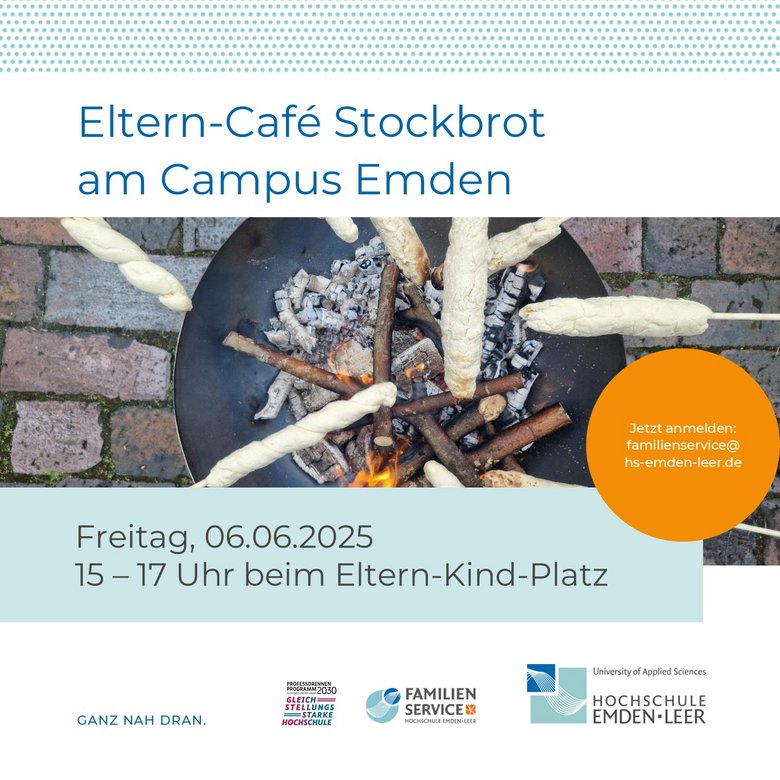 Am Freitag den 06.06.2025 findet wieder unser Eltern-Café am Campus Emden statt. Von 15-17 Uhr können wir gemeinsam am Lagerfeuer sitzen und Stockbrot essen. Für Getränke ist auch gesorgt.