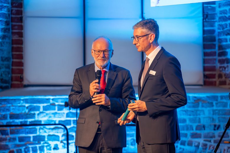 Die Hochschule, so Minister Falko Mohrs, habe sich zu einer festen Größe in der niedersächsischen Hochschullandschaft entwickelt – praxisnah, regional verwurzelt und international geöffnet. „Diese Erfolgsgeschichte ist eng mit dem Wirken von Prof. Dr. Gerhard Kreutz verbunden“, betonte Mohrs. Insbesondere als Präsident habe er die Weiterentwicklung der Hochschule mit strategischer Weitsicht, Engagement und Menschlichkeit vorangetrieben. Dazu zählte Mohrs den Ausbau von Forschungsschwerpunkten, den intensiven Austausch mit der regionalen Wirtschaft sowie die gezielte Förderung von Diversität und Internationalität. Alles zusammen habe das Profil der Hochschule geschärft und sie als modernes, zukunftsgewandtes wissenschaftliches Zentrum der Region Ostfriesland positioniert. Dies bescheinigte dem ehemaligen Präsidenten auch Manfred Nessen als hauptberuflicher Vizepräsident in seiner Laudatio. Kreutz selbst dankte allen seinen Wegbegleitern und Partnern und ließ es sich nicht nehmen, ebenfalls den Blick nach vorne zu richten, um seine Herzensthemen noch einmal auf die Agenda zu bringen.