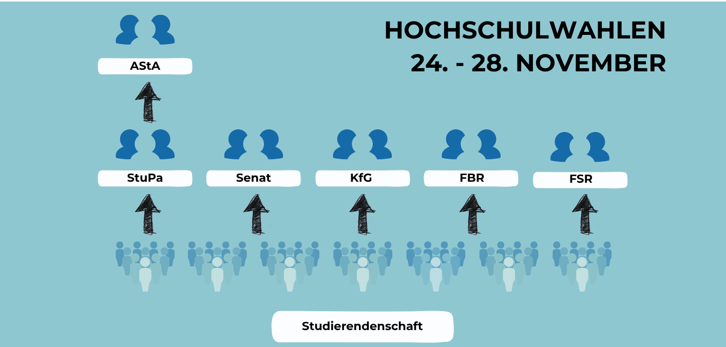 24.-28. November: Geh wählen! Deine Stimme entscheidet, wer die Studierendenschaft in den oben genannten Ämtern vertritt.