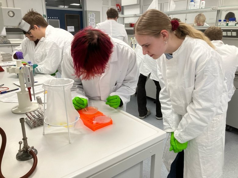 Was ist ein Sicherheitsstamm? Wie kann geprüft werden, ob ein Organismus sich verändert hat? Wozu braucht man eine Mikroliterpipiette? Und wie funktioniert eine PCR? In der vergangenen Woche standen diese Fragen im Zentrum eines Besuchs zweier Biologie-Leistungskurse des Max-Windmüller- und des Johannes-Althusius-Gymnasiums.