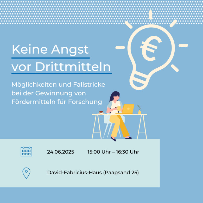 Die Informationsveranstaltung bietet Nachwuchswissenschaftler*innen einen umfassenden Überblick über die Drittmittelgewinnung für Forschung an Hochschulen. Wir werden die Formalia und Einreichungsverfahren erläutern, Strategien für die Durchführung von Projekten vorstellen und die Chancen und Risiken diskutieren, die mit der Drittmittelgewinnung verbunden sind.